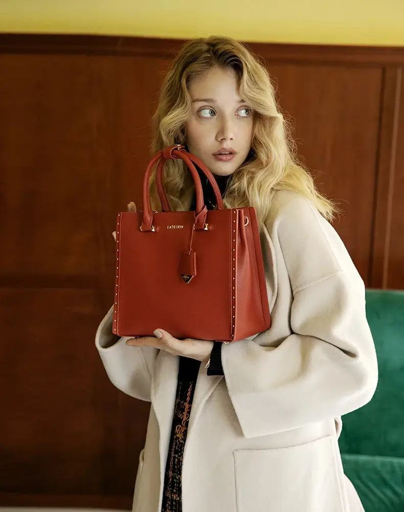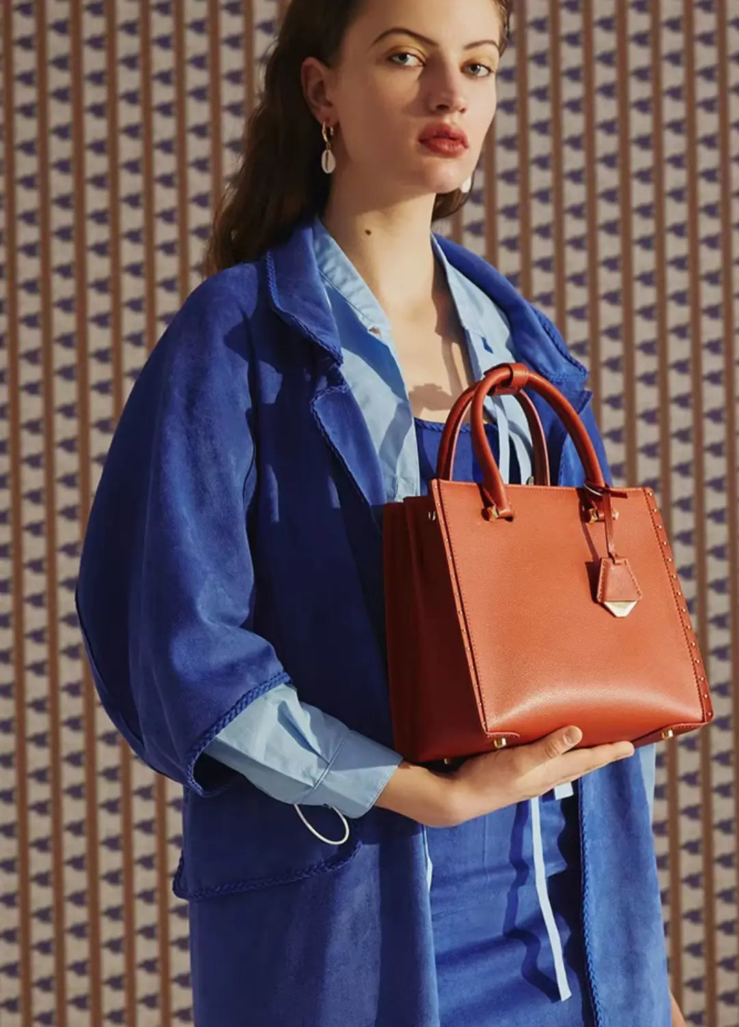 O acabamento minucioso revela costuras uniformes e bordas polidas à mão — detalhes que atestam a autenticidade de um trabalho artesanal criterioso. O interior espaçoso acomoda com discrição os essenciais do cotidiano, preservando a harmonia entre forma e função.